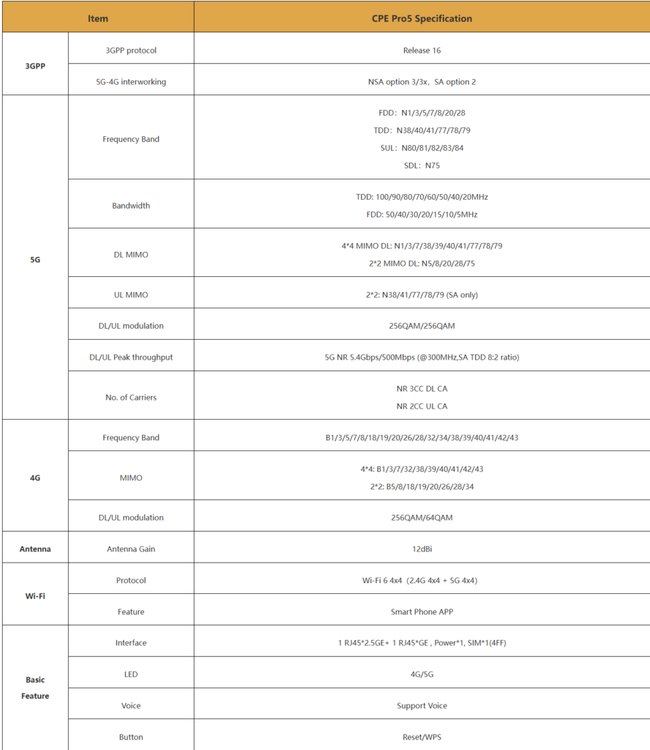 * در 5G، تا 5.4 گیگابیت در ثانیه دانلود کنید و تا 500 مگابیت در ثانیه (بسته به شبکه اپراتور) آپلود کنید، DL MIMO 4×4: n1/3/7/38/40/41/77/78 /79.5G 2×2 MIMO. n5/8/20/28/71; UL MIMO 2×2: n38/41/77/78/79، DL/UL 256QAM